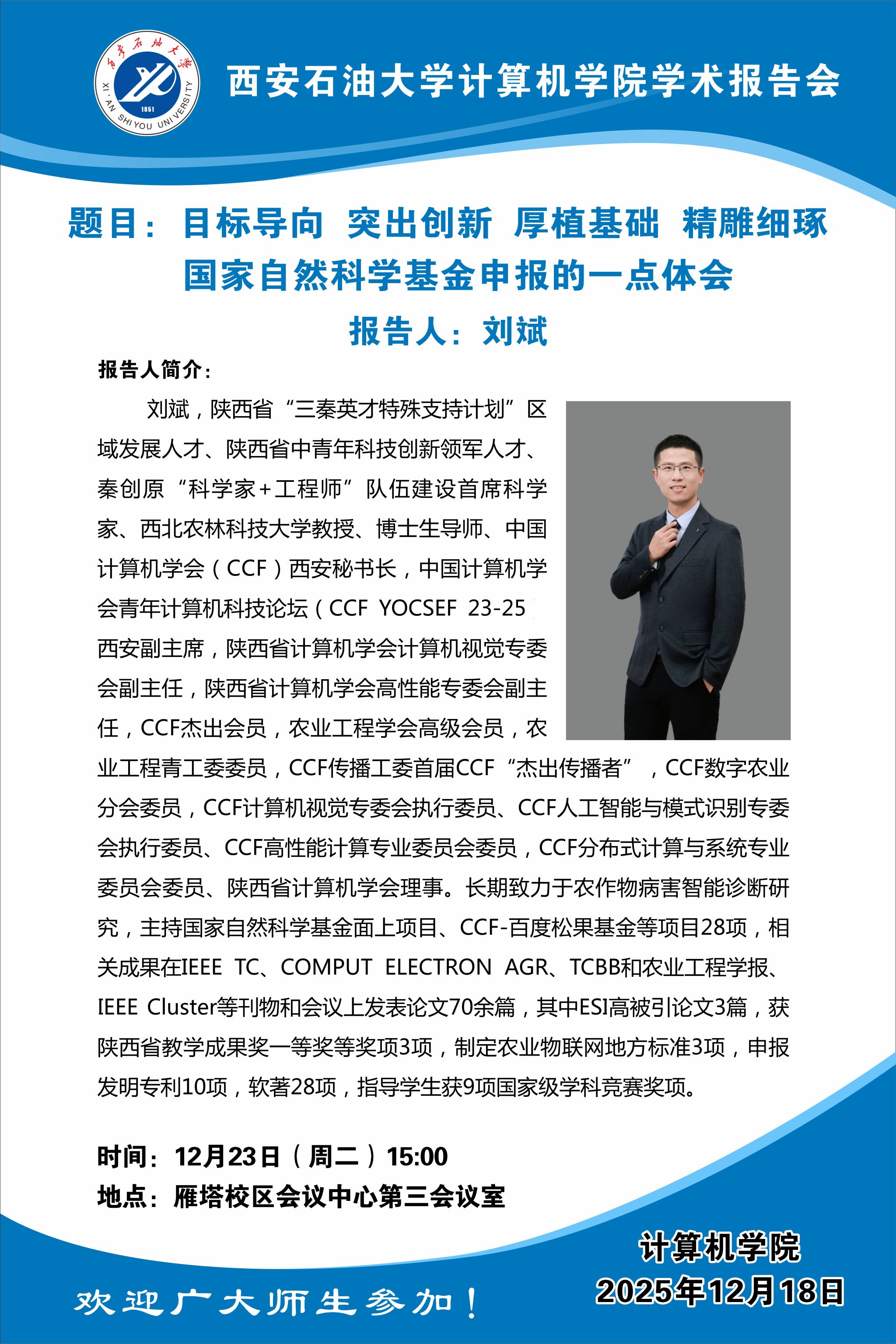 学术报告:目标导向 突出创新 厚植基础 精雕细琢 国家自然科学基金申报的一点体会