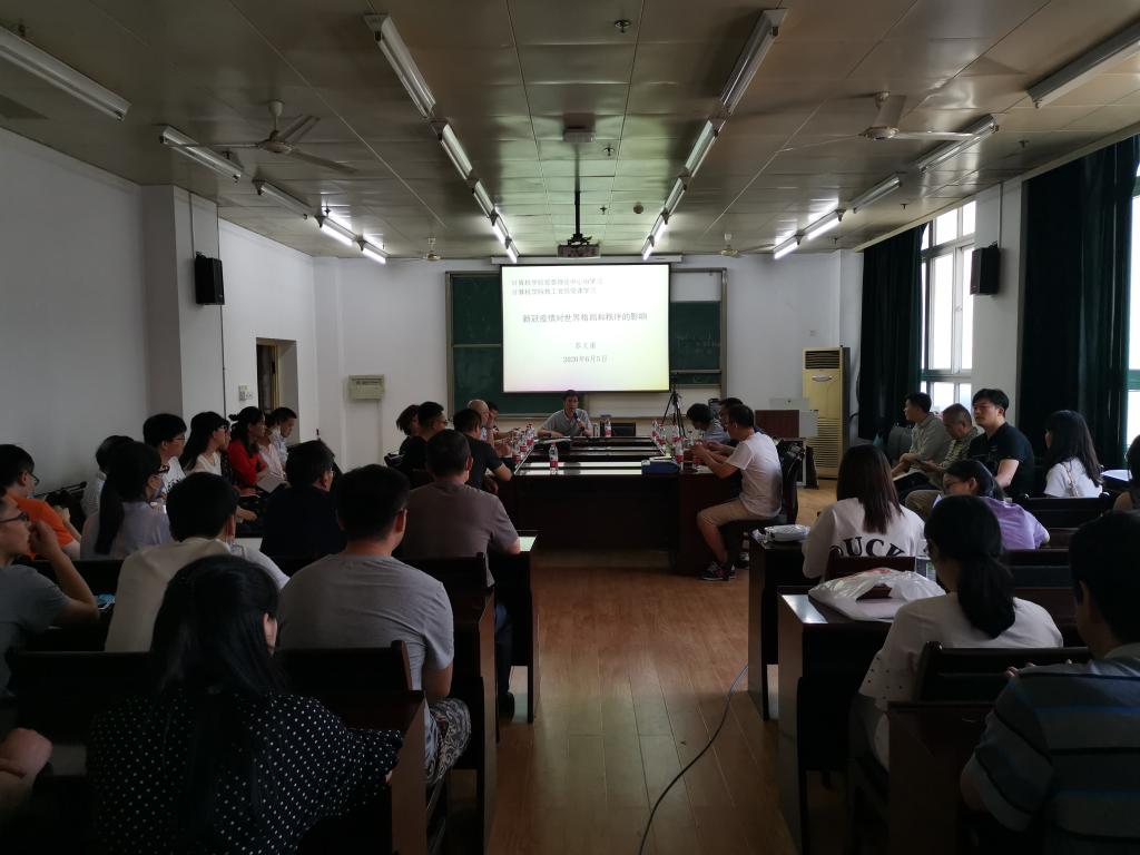 6月5日上午,副校长苏文甫以《新冠疫情对世界格局和秩序的影响》为题,在雁塔校区2教402室为永利3044集团官网全体教工党员讲授专题党课。永利3044集团官网党委书记蔡建文主持本次党课学习。