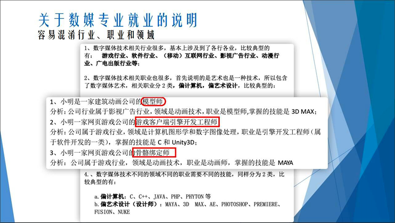 杨文阳老师对本专业的考研情况进行了详细讲解,尤其针对数媒专业的考研方向回答了同学们普遍关心的院校和专业选择困惑,杨老师指出,数媒专业考研分为两个方向,即数字媒体技术和数字媒体艺术。技术是以计算机为基础进行,归结于后台实现、前端开发等。艺术则侧重设计、美术方面,杨老师希望考研同学能够尽早确定考研方向,有利于自己尽早做出相应的规划。
