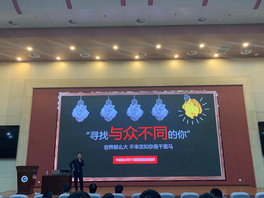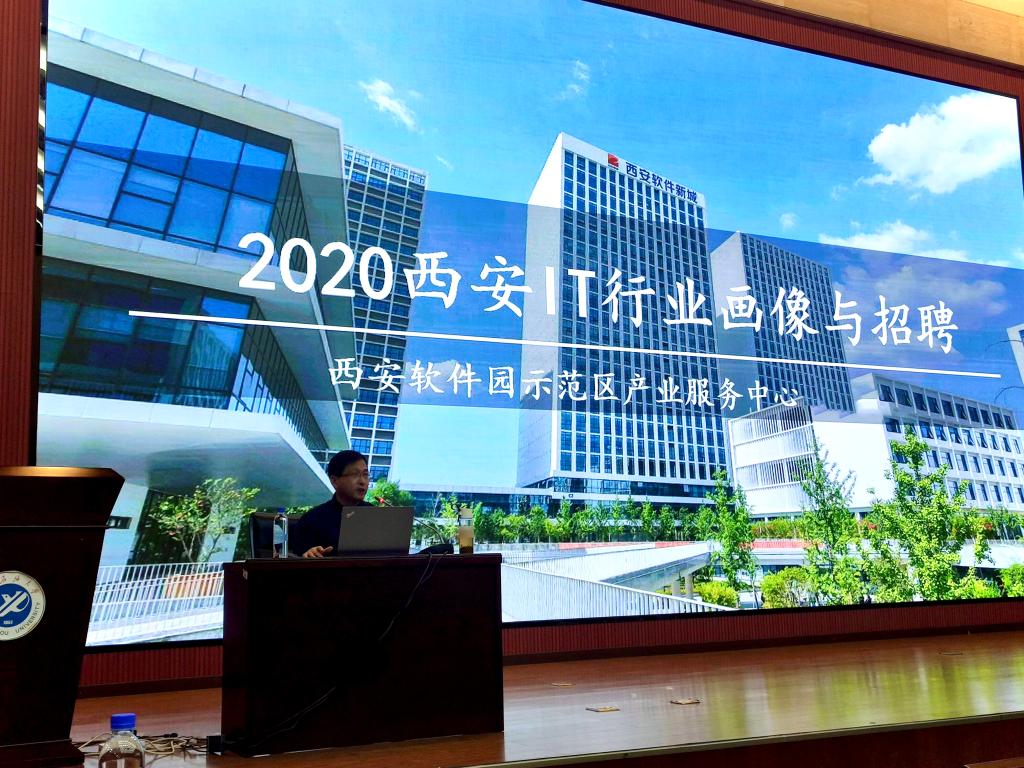报告结束后,西安中服软件有限公司运营总监吕蒙、普联软件股份有限公司西安分公司总经理刘宗庆从公司概况、企业文化、企业员工培养模式、企业目前的发展状况及发展前景与同学们作了分享,并宣讲了2020年企业校招。