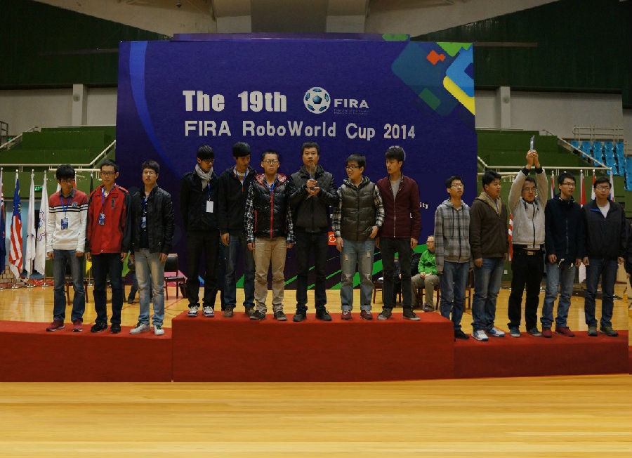 11月5日至10日,由国际机器人足球联合会(FIRA)主办的第19届机器人足球世界杯赛在北京开赛,我校机器人基地严格选拔,派出了由白小亮、李权、石建鑫、谢风海、谭家炜、孙绍华等6名同学组成的石大队,经过精心准备和顽强拼搏,最终以全胜战绩获得半自主大型组项目冠军;另一个半自主中型组桂冠由马来西亚威省理工学院摘得。