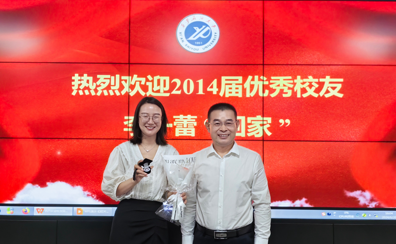 庞秉谦欢迎并感谢李一蕾校友回母校交流,代表学院向李一蕾赠送了学院毕业生专属礼物。李一蕾深情回顾了在永利3044集团官网学习生活的四年时光,感谢母校老师们的悉心培养和无私帮助。李一蕾结合自己的成长经历,毫无保留地和学弟学妹们分享了她的奋斗感悟。从初入学校的迷茫“不敢”到“世界这么大,我想去西藏”;从初入职场的沮丧落差,到感受边疆石油人的责任担当;从父母疼爱的衣食无忧,到深入震区的青年力量;从普普通通一女娃,到年纪轻轻获得全国劳动模范称号……通过脚踏实地、主动作为、事不避难的人生态度,让当代青年的无悔青春在祖国最需要的地方绽放绚丽的“石油花”。