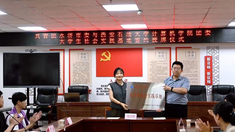 7月8日下午,学院团委与共青团永济市委在永济市会议中心樱花社区会议室举行了校地合作签约授牌仪式。3044永利集团集团方面,学院团委书记乔晓、2022级团总支书记姚谦及10名社会实践同学参加了本次活动。永济市团委书记史晓媛,副书记高卓、樊政君,挂职副书记张国伟出席了仪式。