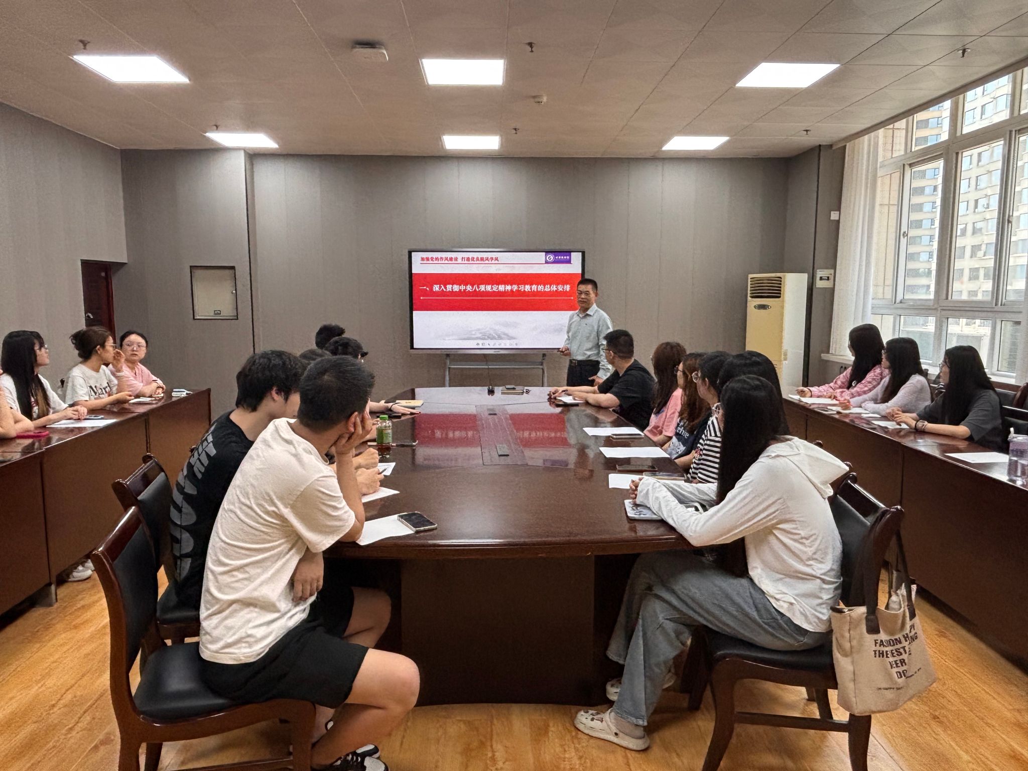 为推进深入贯彻中央八项规定精神学习教育走深走实,根据学校党委学习教育实施方案的要求,6月12日下午,我院党委书记庞秉谦在雁塔校区东方石油楼404会议室为研究生党员讲授了题为“加强党的作风建设 打造优良院风学风”专题党课。2022、2023级研究生党员30余人参加。