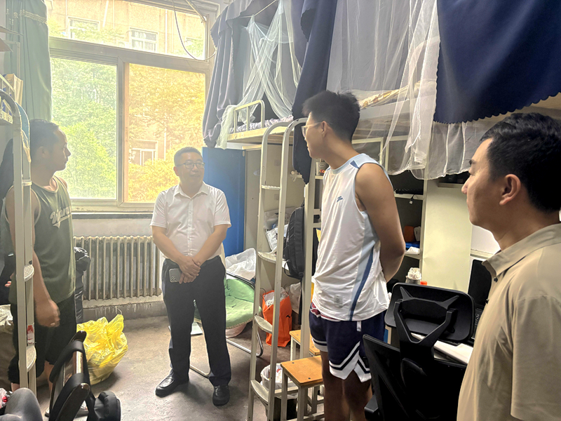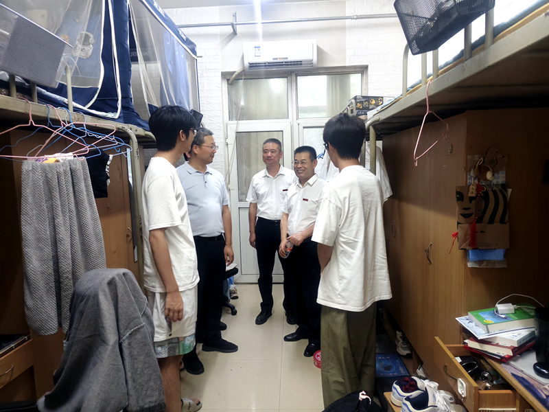 蝉鸣盛夏,骊歌唱响。在2025 届毕业生即将告别校园、奔赴人生新征程之际,学院深入2025届毕业生宿舍,看望、慰问毕业生,与他们进行面对面的交流,为毕业生送上真挚的祝福与殷切的嘱托。本次活动由学院党委书记庞秉谦、院长刘志坤带队,党委副书记庞远,副院长张留美、杨文阳协同,毕业班辅导员李路、王天航参加。