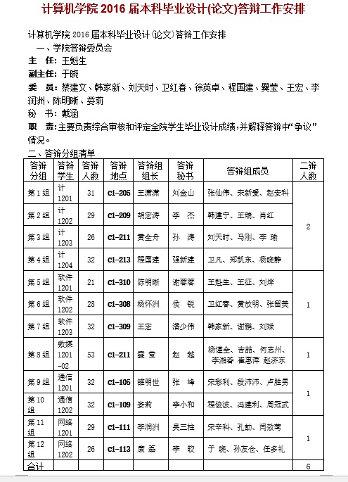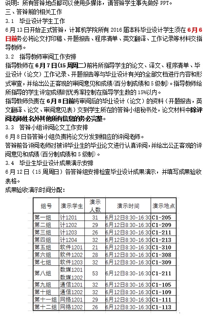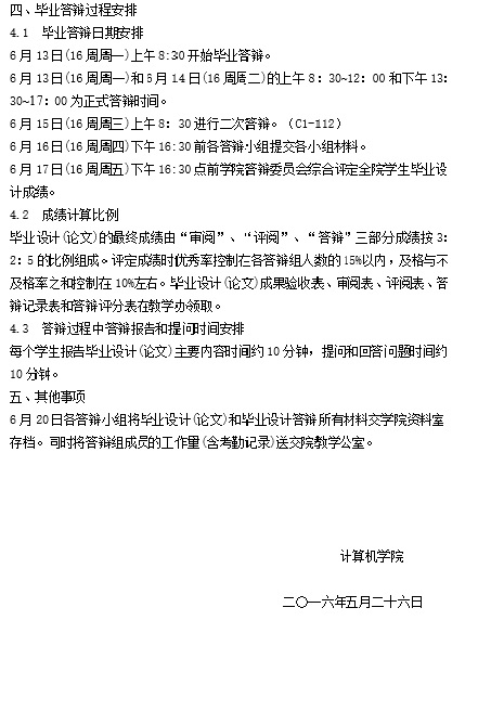 永利3044集团官网2016届本科毕业设计(论文)答辩工作安排
