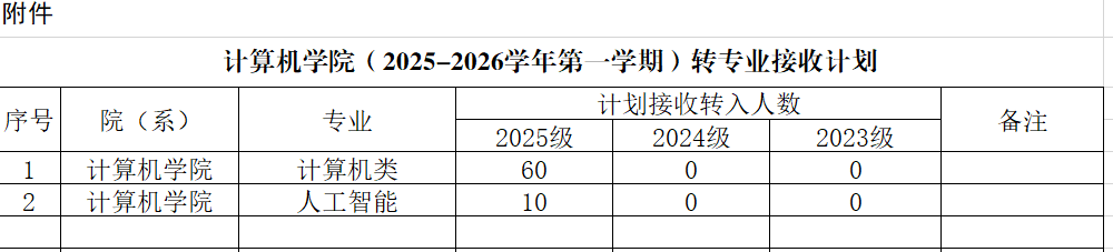 附件:转专业接收计划