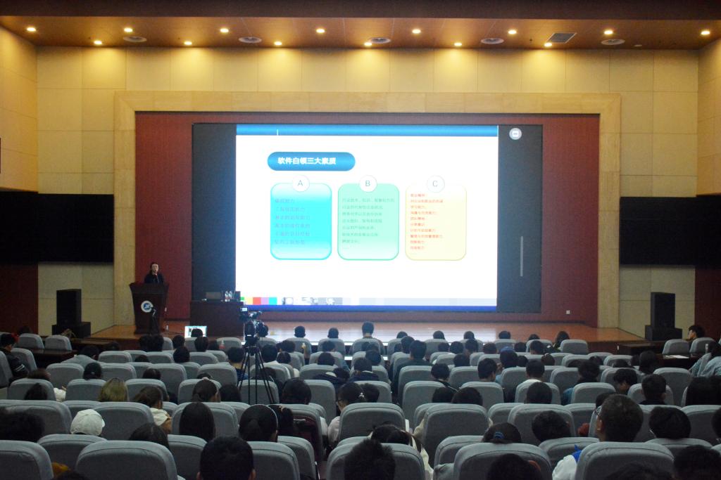 王莺老师首先以21世纪社会的人才需求作为切入点,强调了计算机行业的从业人员对当前社会所产生的巨大影响。随后,王莺老师通过分析我校计算机类专业的课程设置,详细向学生阐述了计算机行业从业者所需要具备的基本能力以及未来的职业素质养成和愿景规划。最后,王莺老师站在一名企业管理者的角度,向同学们说明了当前的计算机企业需要的人才应具备的个人品质和职业素养,告诫同学们在大学的四年学习生活中,不能仅局限在课程的学习中,一定要参与到一个完整的项目中去,熟悉项目流程,理解工程思想,才能更好的掌握所学技术的实际应用。