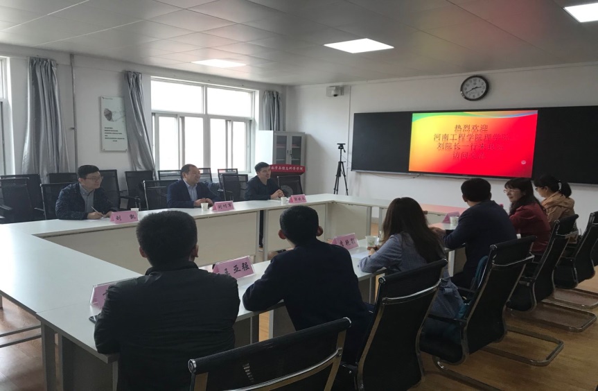 10月6日下午,河南工程学院理学院副经理(主持工作)刘付军、副经理刘凯、数学与应用数学系主任郭晓永一行来永利3044集团官网交流学习,永利3044集团官网经理刘淳安、副经理王爱丽、信息与计算科学系以及统计系系主任王亚强、高磊、胡江红、李艳颖等在思贤楼424会议室与来访人员进行了交流,会议由副经理王爱丽主持。