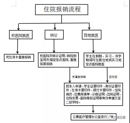 如寒暑假、实习、休学期间在外地住院的员工,出院后提交相关材料由公费医疗管理办公室与渭滨区医保中心联系办理住院报销手续。