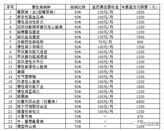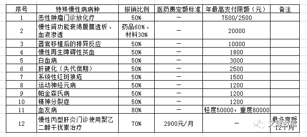 除以上纳入我市城乡居民基本医疗保险门诊慢性病统筹的病种外,新增加9种员工门诊疾病病种:支气管炎、支气管肺炎、心肌炎、过敏性紫癜、泌尿系感染、急性肾小球肾炎、血小板减少性紫癜、营养性贫血、血友病已纳入老员工城乡居民医保门诊慢性病报销范围。