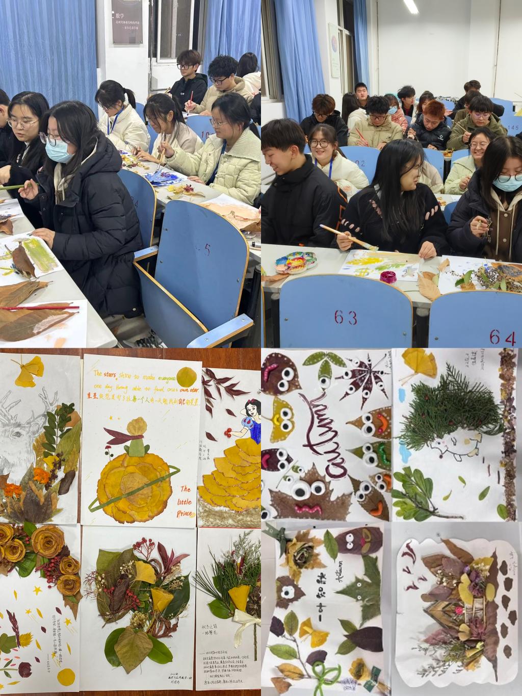 本次“知心巧手,叶绘秋天”心理育人贴画活动是学院借助艺术创作助力心理健康教育工作的一次创新性尝试,让同学们在享受创作乐趣的同时,释放了身心压力,也为老员工活增添了一抹靓丽色彩。今后学院将坚持育心与育德相统一,积极探索将体育、美育等元素融入心理育人工作的教育体系,营造全程浸润式心理健康教育氛围,为员工健康成长发展赋能。(文/魏研 图/刘佳博 审核/王欢)