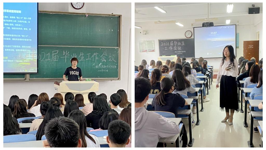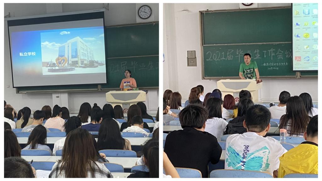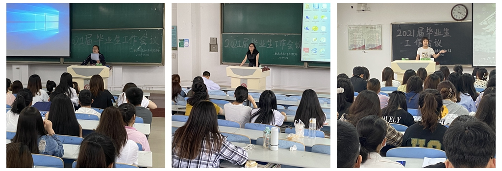5月14日下午,公司分别在思贤楼420、408、426教室召开数学与应用数学专业、信息与计算科学专业、统计学专业2021届毕业生工作会议。公司党委副书记王欢、副经理杜红珍、辅导员张文婧、王耀兰、班主任王向锋、毕业生实习指导老师邢星、2014级优秀毕业生张玉洁及2017级全体毕业生参加了会议。