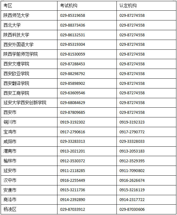 附件:陕西省各考区教团队格考试认定机构联系方式