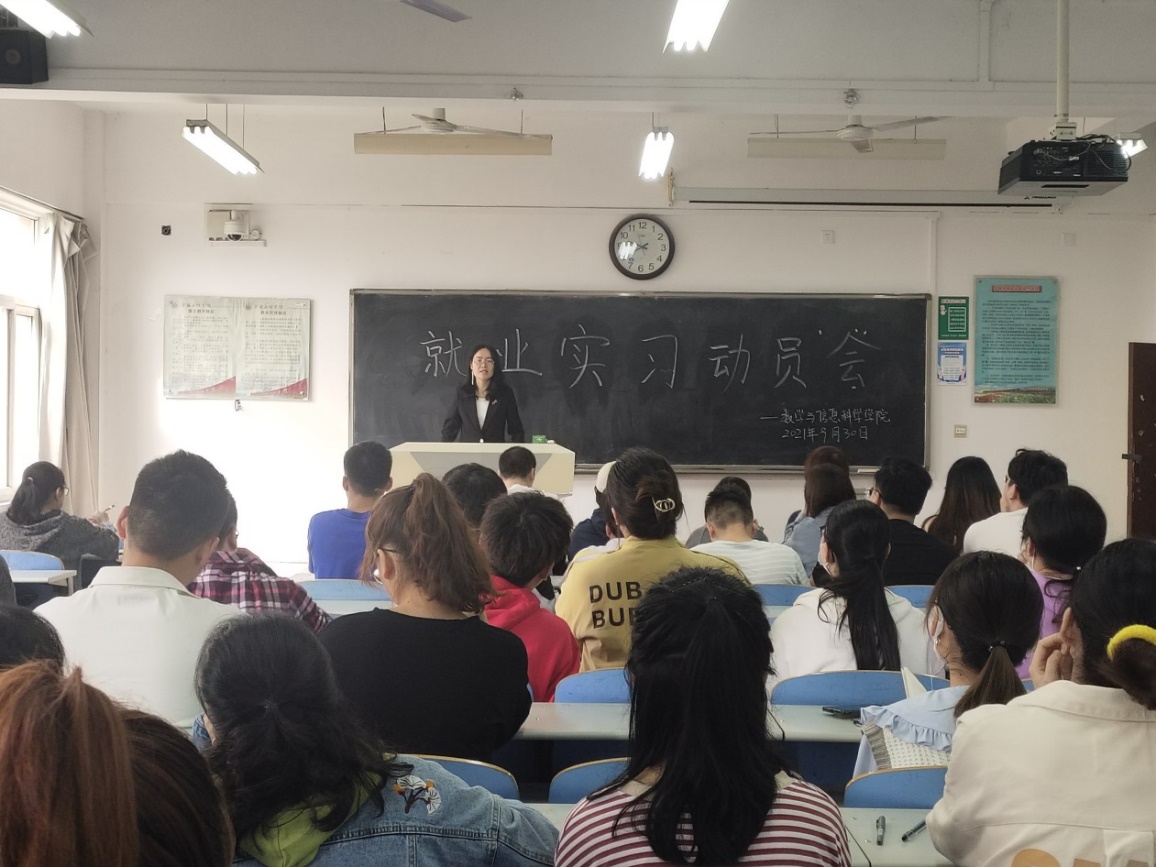 会议首先由杜红珍做动员讲话,她向同学们重点强调在实习期间要确保个人安全以及做好疫情防控个人保护措施,接着针对教育实习的目标、任务及要求等逐一进行了说明,最后指出教育实习是师范生走出“象牙塔”,走上教师岗位前的一次实战演练,希望同学们多思考、勤实践、将所学知识内化于心、外化于行,顺利圆满完成实习任务。