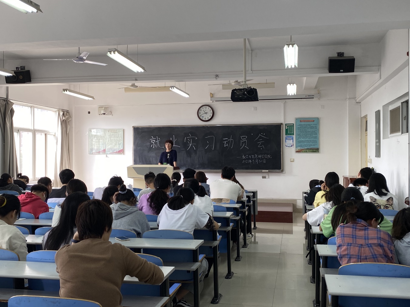随后,王欢书记强调了教育实习对师范生未来职业发展的重要意义,针对师范生就业遇到的各类问题做出了详细指导与解答,指出同学们要珍惜实习机会,勤学苦练、不负韶华、未来可期。最后,鼓励同学们在实习和就业过程中如果遇到问题和困惑可以随时与她沟通、共同解决。
