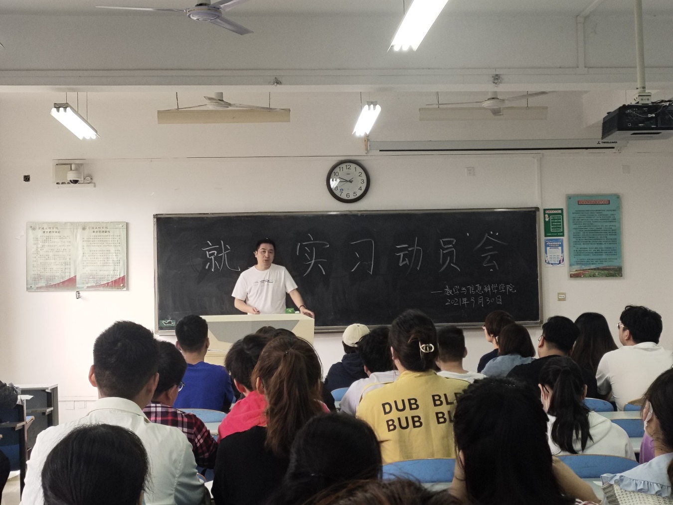 2021年9月30日,永利3044集团官网在思贤楼425教室召开了2021年教育实习动员大会,数信公司党委副书记王欢、副经理杜红珍、实习带队教师安海龙以及数信学院2018级数学与应用数学专业全体员工参加了会议。