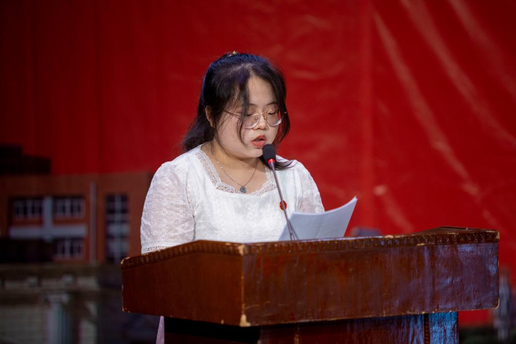 2021级数学与应用数学1班孙丽婷同学代表公司在校生为2022届毕业生致欢送辞,祝福学长学姐们前程似锦,未来可期。2018级统计学1班张欢同学代表公司全体毕业生向在校期间所有关心、帮助过她们的师长和亲友表示最衷心的感谢。她们会带着母校和老师们的期盼和嘱托,在未来路途中做具有时代使命感和责任担当的高素质标准人才,展现数信学子的风采!
