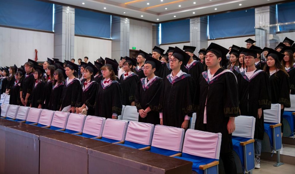 刘淳安代表学院向2022届顺利完成学业的全体毕业生表示热烈祝贺,向为同学们的成长成才付出辛勤劳动的老师们表示衷心感谢,向含辛茹苦养育和支持同学们完成学业的家人们致以崇高敬意。他指出,在过去的四年里,2022届毕业生在老师们的辛勤培育下刻苦学习,追求卓越,探索真知。经过同学们的不懈努力有32人考取了硕士研究生,49人光荣地加入了中国共产党,32人被授予校级优秀毕业生称号,312名本科生顺利取得学士学位。还有不少同学在国家、省级和校级的各类竞赛中取得优异的成绩。这些成绩的取得既是同学们的荣誉,也是公司的荣耀。他向同学们提出了三点希望:一是加强品德修养,做一个德才兼备的人。人的品德是人生道路上不断进取的不竭动力。有了良好的品德,人生的脚步才能走得更稳健、更长远。二是养成终身学习的良好习惯,做一个有益社会的人。学习不会在离开校园后停止,而是将伴随我们终生。大学毕业,步入社会,同学们的事业才刚刚起步。要成为一个能为社会做出贡献之人,要成为人生道路上真正的强者,就必须不求近功,不安小就,与时俱进,终生学习。三是要开拓创新,努力成为工作岗位上的创造者、开拓者和引领者。大学四年同学们一直在努力培养自我创新、创业精神。在走上工作岗位后希望同学们能够认真自觉去实践这种精神。要有敢于面对事业初期艰难和困苦的勇气,要有充满对事业开拓创新的自信和干劲,要有不断超越前人的胆识和斗志,努力实现自己的人生目标。