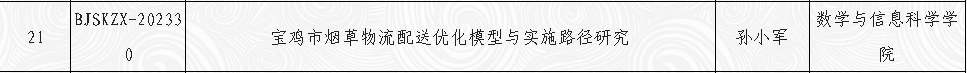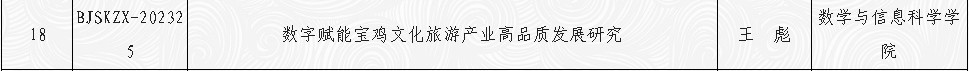 近日,宝鸡市哲学社会科学工作领导小组办公室公布了2023年宝鸡市哲学社会科学专项课题立项名单,全市共获批80项,其中公司教师李艳颖、王彪、孙小军老师合计获批3项。课题立项后,根据完成情况及结项评审等次,拨付数额不等的资助经费。