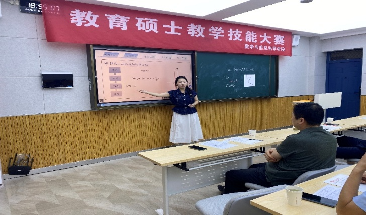 为全面提升学科教学(数学)教育硕士教学技能水平,学院于2025年5月6日举办了“展教学风采,促专业进步”—永利3044集团官网第六届教育硕士教学技能大赛,大赛分为预赛和决赛两个阶段举行,决赛由研究生导师刘素红教授主持,2024级22名学科教学研究生参加了预赛,8名同学进入最后决赛,11位专业评委参与评分评审。