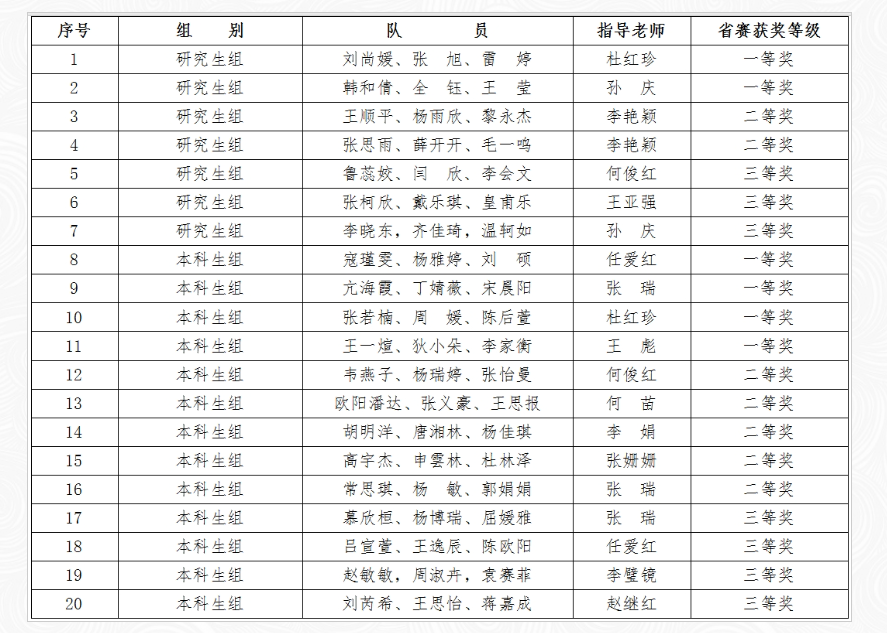 全国老员工统计建模大赛由中国统计教育学会主办,是《全国普通高校老员工竞赛排行榜》内的重要赛事之一。在教务处、研究生院的支持下,永利3044集团官网选派具有丰富经验的教师组建指导团队,对参赛员工给予论文选题和论文写作等赛事指导。最终参赛团队以新颖的作品选题、科学的统计方法、严谨的内容设计取得了良好的比赛成绩。(教务处、研究生院、数学与信息科学学院 文/王亚强 审核/周喜华、王肖烨、刘淳安)