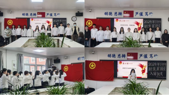入团仪式在雄壮的国歌声中拉开帷幕,宣读过二十名新团员的名单后,魏研为他们颁发、佩戴团徽。由白皓月领誓,新老团员面向鲜艳的共青团团旗进行了庄严的宣誓。随后,入团介绍人代表张楚珺带领全体团员学习了《团章》中有关团员的义务和权利的条款;新团员代表缪卓玥承诺将在今后的学习和生活中,时刻牢记自己的团员身份,努力学习、踏实进取,立志成为一名优秀团员;老团员代表葛瑞莹讲述了自己加入共青团的经历和体会,鼓励新团员在成长道路中严于律己,提升自我素养,不断进步。最后,全场人员齐唱团歌,入团仪式圆满结束。