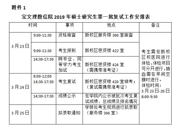 复试时间:3月23日—24日。(详细安排见附件1)