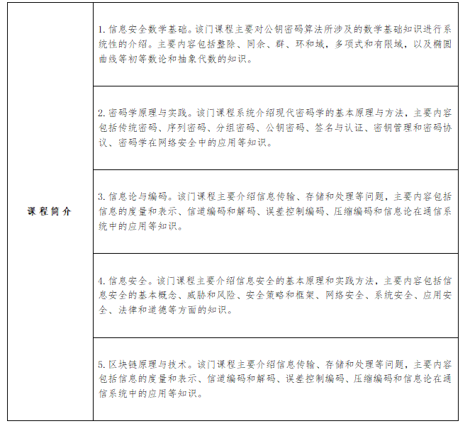 (3)国际化与终身学习。通过课程体系设计,培养适应技术变革的持续学习与创新创业意识,跟踪量子密码、后量子密码等前沿技术,具备技术竞争能力。