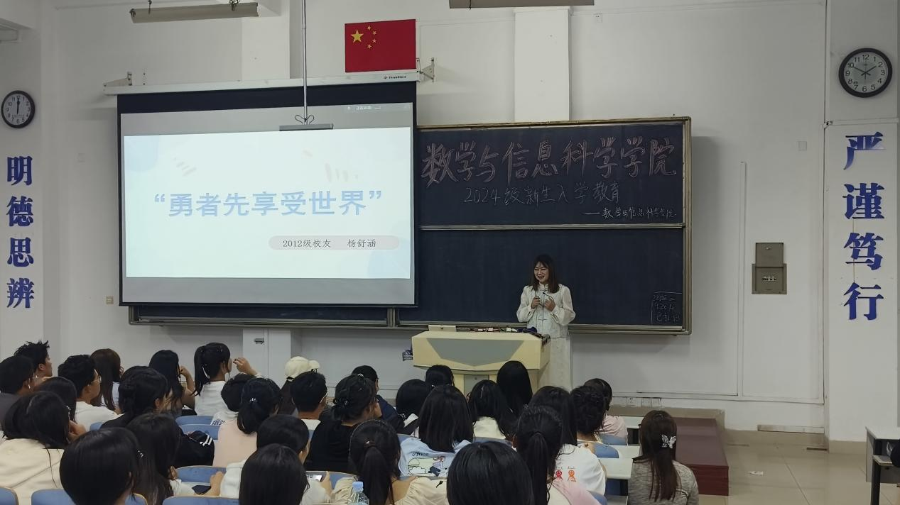 9月22日晚,公司数学与应用数学专业2012级员工、宝鸡市第一中学教师杨舒涵应邀在思贤楼420为全体新生做报告。